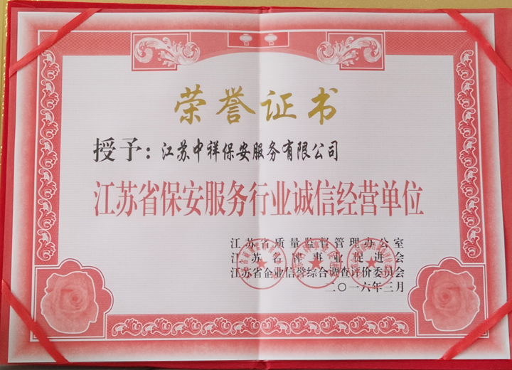 >> 查看詳情江蘇中祥保安是一家紀(jì)律嚴(yán)明,服務(wù)至上的公司,我們在眾多公司中選中中祥,于六月展開合作,合作過程非常愉快,看到中祥的專業(yè)...